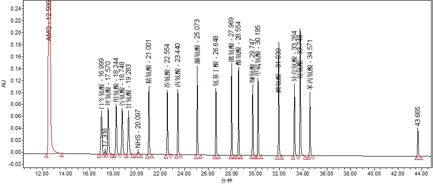 通過(guò)衍生反應(yīng)在氨基酸上接上疏水且有紫外吸收的基團(tuán),可以實(shí)現(xiàn)在C18柱+反相流動(dòng)相的體系下進(jìn)行HPLC分析。