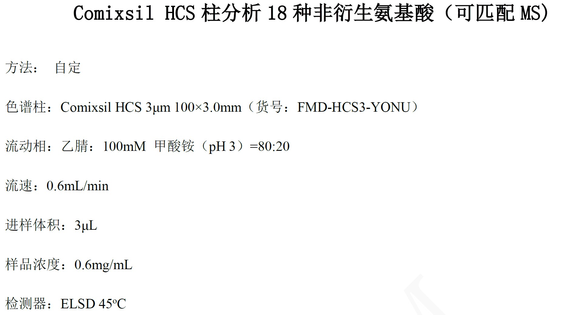菲羅門也推出Comix系列智能神柱,可以在以ELSD、 CAD或者MS為檢測(cè)器的條件下分析氨基酸。
