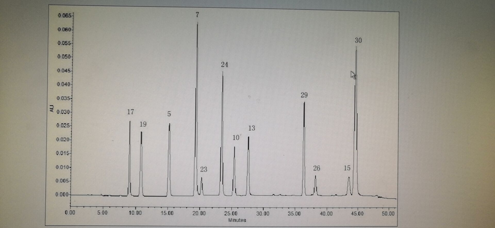 圖 2 第二組混合標(biāo)準(zhǔn)溶液色譜圖
