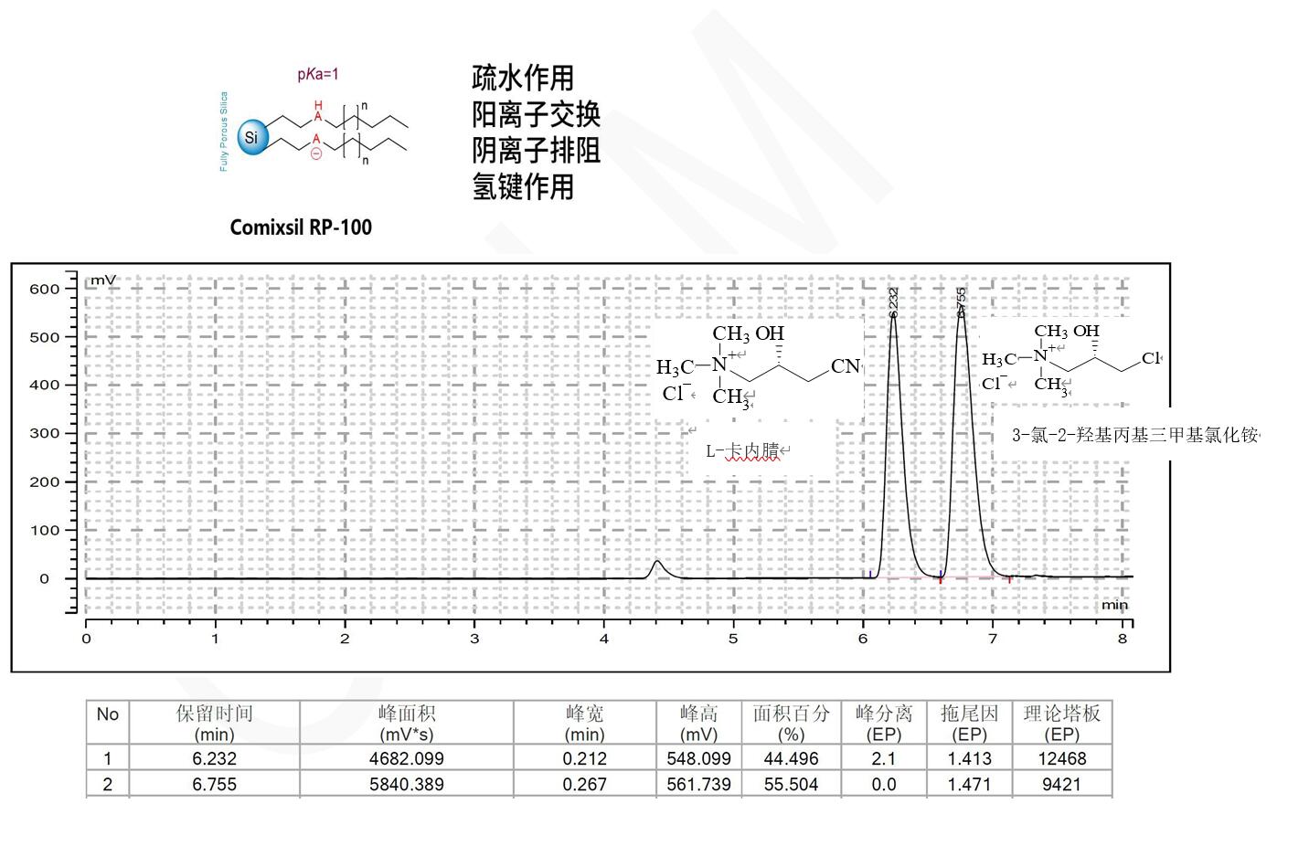 Comixsil RP-100 混合模式對(duì) L-卡內(nèi)腈和 3-氯-2-羥基丙基三甲基氯化銨的分析