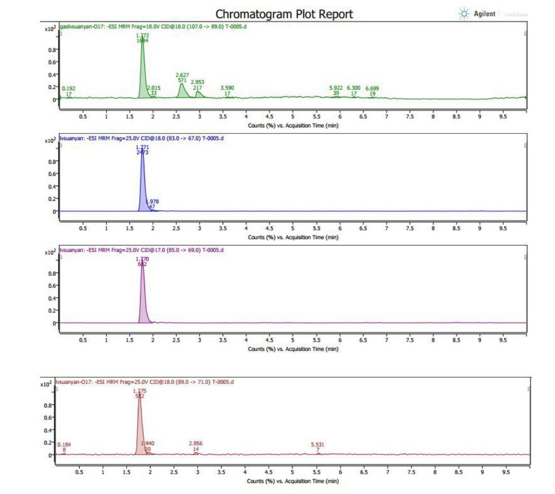 液質(zhì)聯(lián)用方法:與 GB 5009.291-202 標(biāo)準(zhǔn)中,5.4.1 中的流動(dòng)相一致,5.4.2 的質(zhì)譜條件一致。