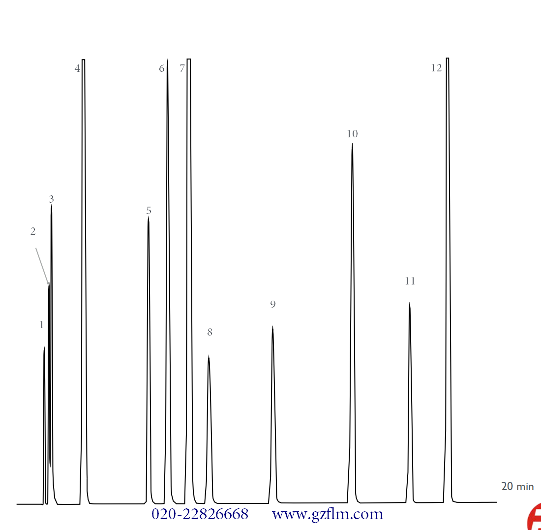 消費(fèi)者在購(gòu)買食品時(shí)也應(yīng)注意查看食品配料表和營(yíng)養(yǎng)成分表等信息,了解食品中是否添加了二氧化硫或其鹽類作為食品添加劑,并合理控制攝入量。同時(shí),對(duì)于顏色過(guò)白、過(guò)于鮮亮或有刺激性氣味的食品應(yīng)保持警惕,避免購(gòu)買和食用可能過(guò)量添加二氧化硫的食品。 Sulfur compounds Column: FBX-VOC 2 - 0.53mm, 5.00μm, 30m Conditions: Oven Program: 30°C, 5°C/min, 130°C Carrier Gas: Hydrogen, 3.8mL/min Injector: 200°C Detector: FPD, 200°C Peak identification 1.Hydrogen sulfide 2.Carbonyl sulfide 3.Sulfur dioxide 4.Methanethiol 5.Methyl sulfide 6.Ethanethiol 7.Carbon disulfide 8.2-propanethiol 9.1-propanethiol 10.Thiophene 11.1-butanethiol 12.Methyl disulfide ![]() |