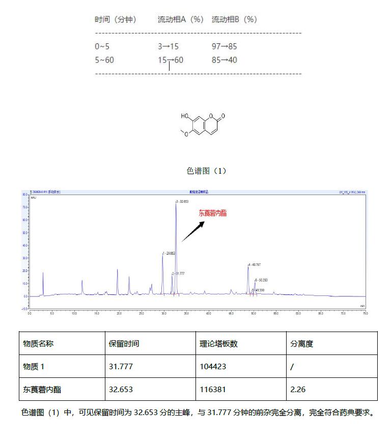 App ID: FLM-T250005 Titank C18-Plus 柱對顛茄流浸膏-特征圖譜的檢測 方法:《中國藥典》2020 版一部 色譜柱:Titank C18-Plus 5μ 250x4.6mm(貨號:FMG-0060-EONU) 流速:1mL/min 檢測器:UV 344nm 柱溫:25oC 樣品濃度:根據藥典配制進樣量:10uL 流動相:A:甲醇流動相B:0.05%磷酸溶液 ![]() |