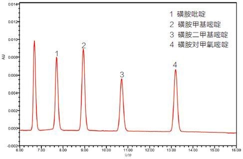 圖1 添加水平為0.2 mg/kg豬肉基質中磺胺檢測色譜圖