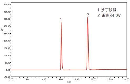 圖1 沙丁胺醇和萊克多巴胺的熒光色譜圖 ![]()