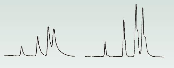如果僅部分解析兩個(gè)峰形(兩個(gè)峰僅有部分分開),則可能會(huì)認(rèn)為其是裂峰或雙峰。如圖4顯示的情形。