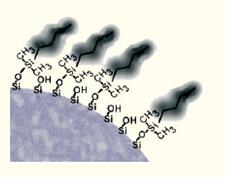 圖9. 通過利用有機(jī)氯硅烷將疏水性配體化學(xué)鍵合到硅膠表面形成了疏水界面。